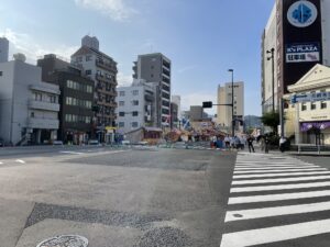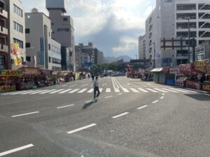 朝一だったので、店はまだオープンしていませんでしたが、人もほとんどいなかったので、車道を走り放題でした。