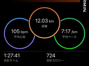 72秒(3:00/km)を狙って、ほぼ予定通りのペースで走破できた。