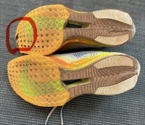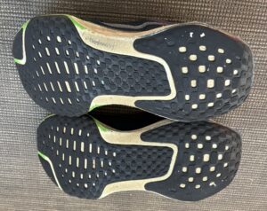 一方で、ポイント練習、レースで使用しているヴェイパーフライ3は、つま先の方が摩耗しています。