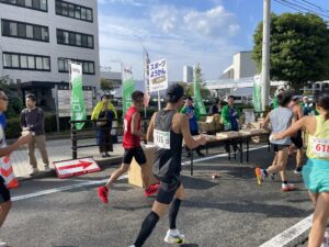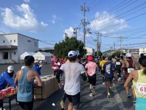 16キロ地点でちくわを取って、一口食べましたが、走りながら食べるのはきつかったので、残りはフィニッシュ後に食べました。