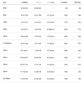 ハーフは1時間27分46秒でサブ3ペースから少し貯金があるペース。