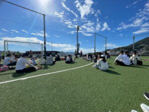 最初にハピネスアリーナの屋上のフットサル場にて開会式がありました。