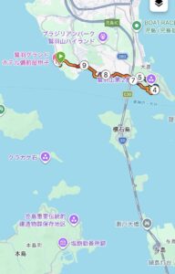 宿泊先の鷲羽グランドホテルから鷲羽山展望台まで。