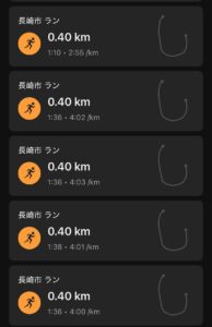 今朝のメニューは400m×5本。