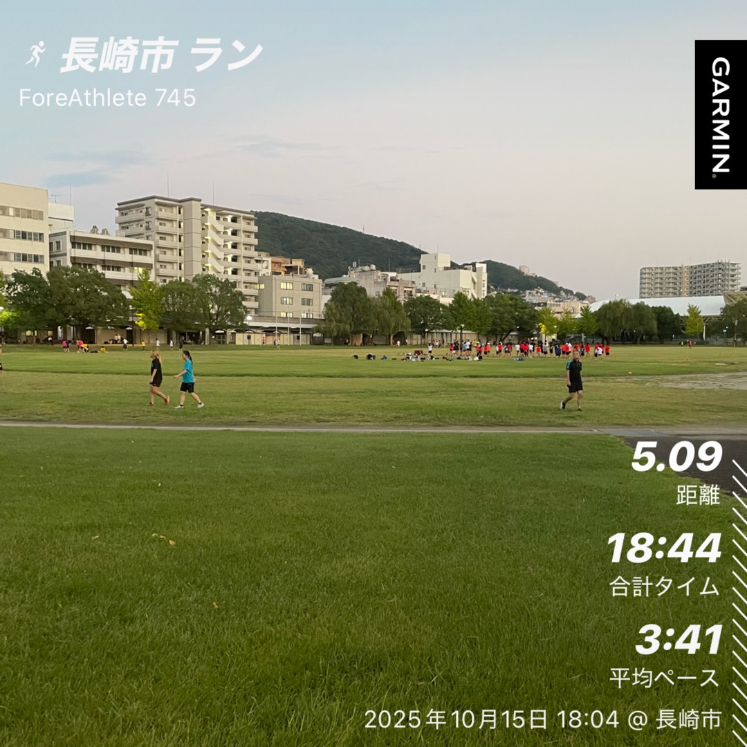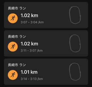 5キロのペース走が終わってから約40分後に長崎市陸上競技会の練習会。